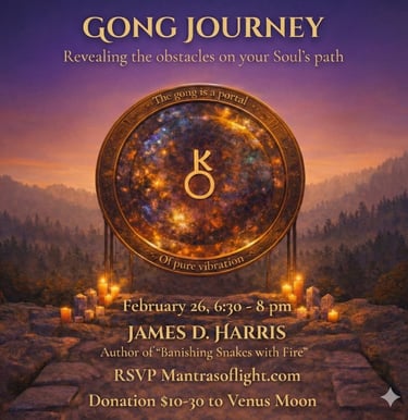 In this immersive workshop, the gong is approached not as an instrument, but as a portal—a living field of pure vibration that opens a doorway beyond the thinking mind and into direct inner knowing. As its frequencies expand and evolve, the gong carries us across thresholds of awareness, dissolving ordinary perception and inviting us into the journey realm where truth speaks in images, sensations, and felt experience. Within this vibrational passage, what has been hidden or protected may gently reveal itself: the wounds, beliefs, or energetic obstacles that quietly block the flow toward your soul’s purpose. Held in sacred space and guided by intention, the gong provides both passage and protection, allowing you to safely encounter what is ready to be seen, released, and transformed—so a clearer path forward may emerge.